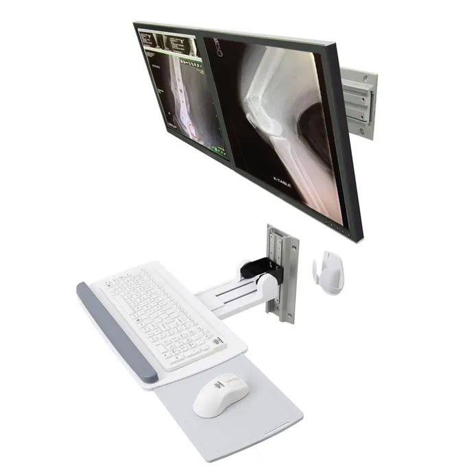 Platz sparende Mehrschirmlösung mit geringem Wandabstand: Ideale Montagelösung für PACS Anwendungen. Konfiguration von 2 Displays horizontal.