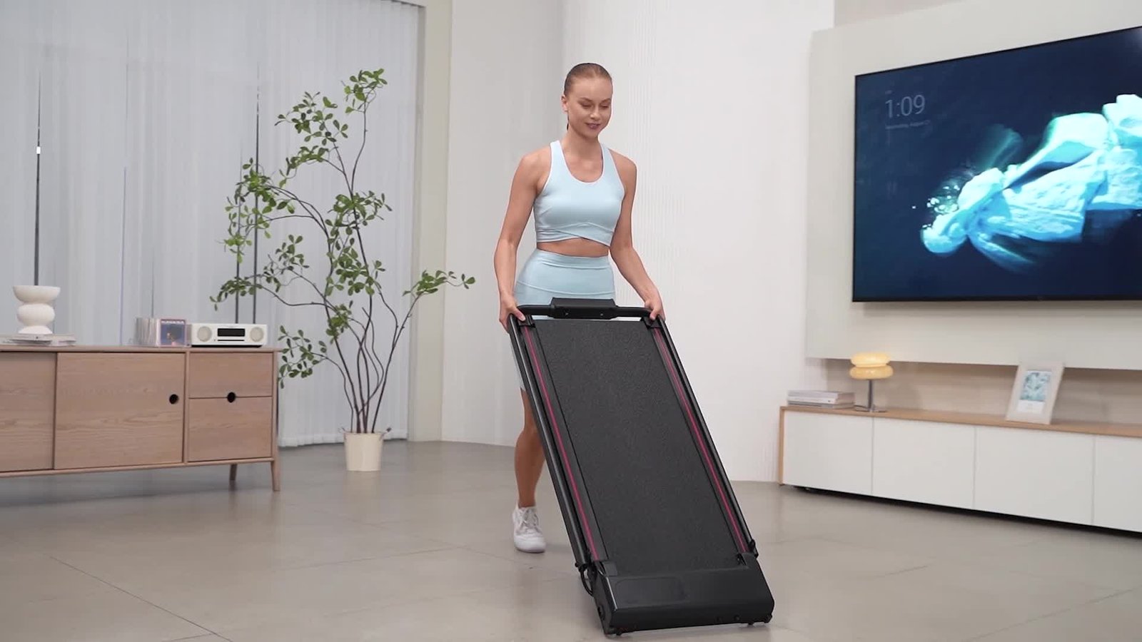 Das Laufband wird komplett montiert geliefert und kann direkt nach dem Auspacken verwendet werden. Mit seinen Rollen lässt es sich leicht bewegen und verstauen oder aufbewahren. Eine Person kann es frei bewegen. Das Mini-Laufband passt flach unter Ihren Stehpult und bietet Ihnen die beste Fitness im Büro, während Sie arbeiten. Und wenn es nicht wird, lässt es sich leicht unter Möbeln verstauen.