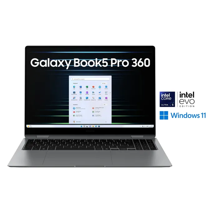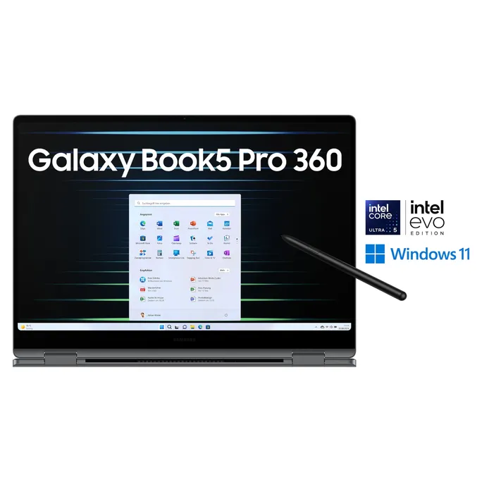 Verleihe deiner Produktivität eine mobile Dynamik mit dem Galaxy Book5 Pro 360 und seinem 2-in-1-Convertible-Design. Mit einem Gewicht von nur 1,69 kg und einem eleganten Finish in Moonstone Gray ist es ein vielseitiger Begleiter für all deine Projekte.