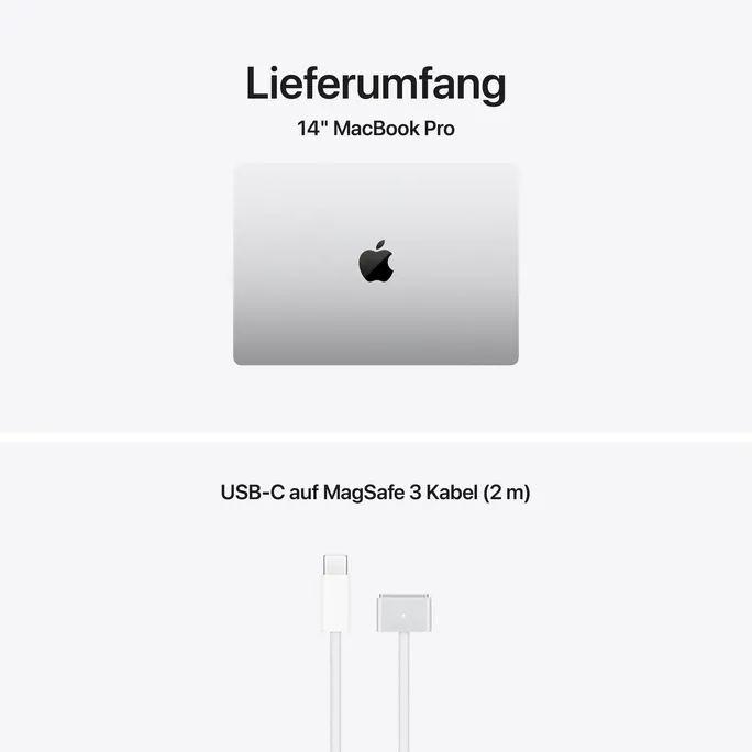 *1) Apple Intelligence ist in der Betaversion verfügbar. Einige Features sind u. U. nicht in allen Regionen oder Sprachen verfügbar. Informationen zur Verfügbarkeit von Features und Sprachen und zu den Systemanforderungen gibt es unter support.apple.com/de-de/121115.*2) Die Batterielaufzeit variiert abhängig von Verwendung und Konfiguration. Weitere Infos unter apple.com/de/batteries.*3) Apps sind im App Store erhältlich. Software und Inhalte sind möglicherweise separat erhältlich. Änderungen an der Titelverfügbarkeit vorbehalten.*4) Das Display des 14″ MacBook Pro hat oben gerundete Ecken. Als Standard-Rechteck gemessen hat das Display eine Diagonale von 14,2″ (35,97 cm). Der tatsächlich sichtbare Displaybereich ist kleiner.*5) Bis zu 1.600 Nits Spitzenhelligkeit bei Temperaturen unter 25 °C.*6) FaceTime ist nicht in allen Ländern oder Regionen verfügbar.